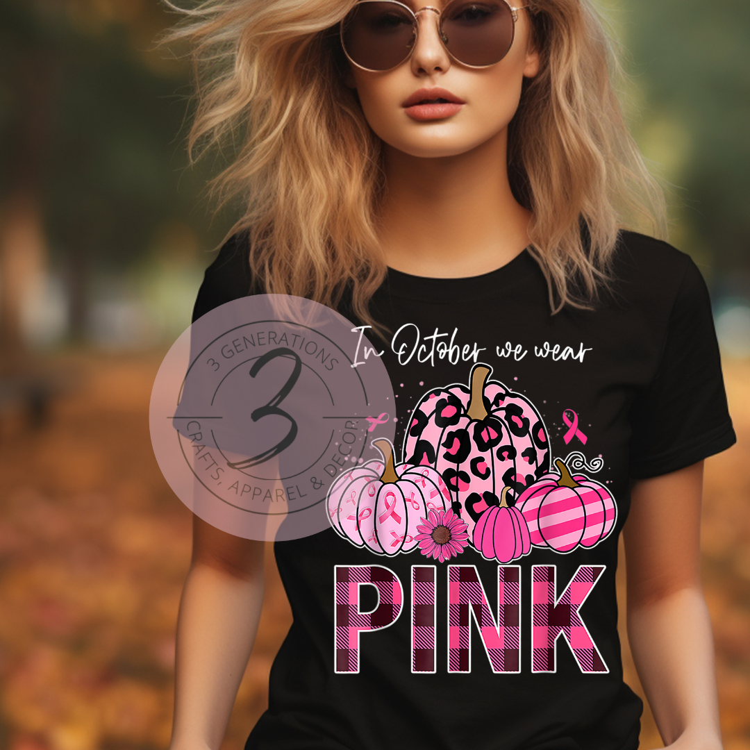 Breast Cancer Awareness Leopard and Plaid Pumpkin Graphic Tee