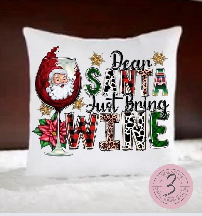 Dear Santa Just bring Wine 14 by 14 inch pillow