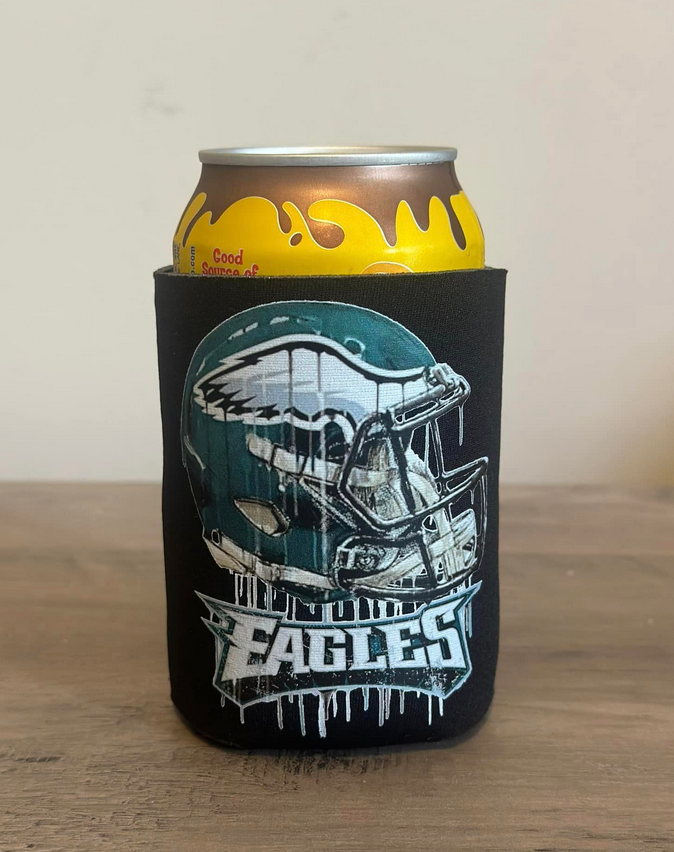 Distressed Eagles Helmet 12oz Drink Coozie