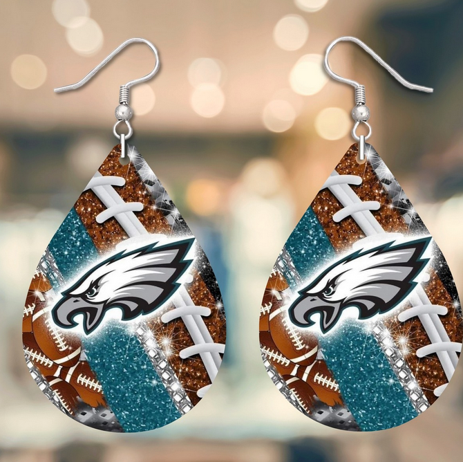 Eagles Glitter Football Tear Drop Earrings