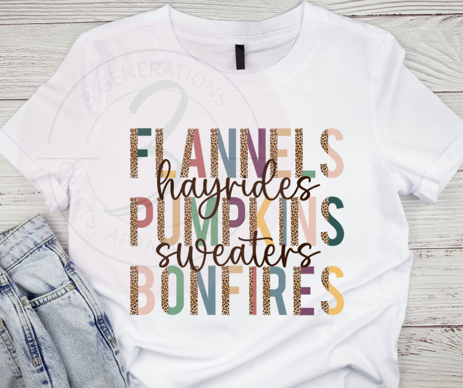 Flannels, Hayrides, pumpkins leopard letters Graphic Tee