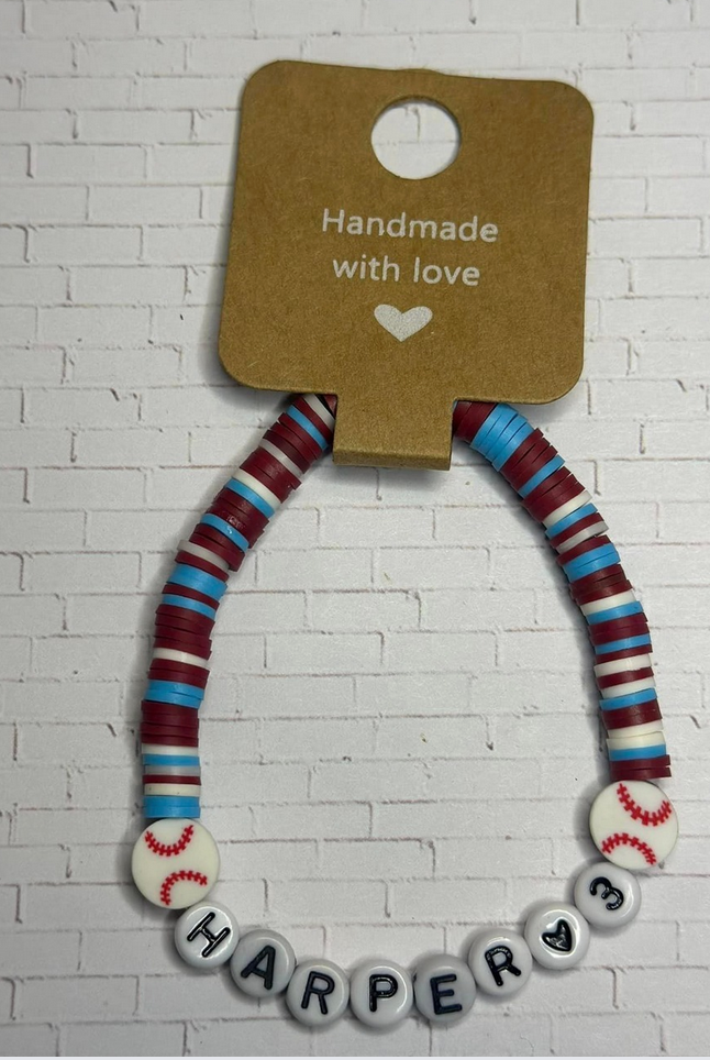Harper Powder Blue/Maroon Clay Bead Bracelet