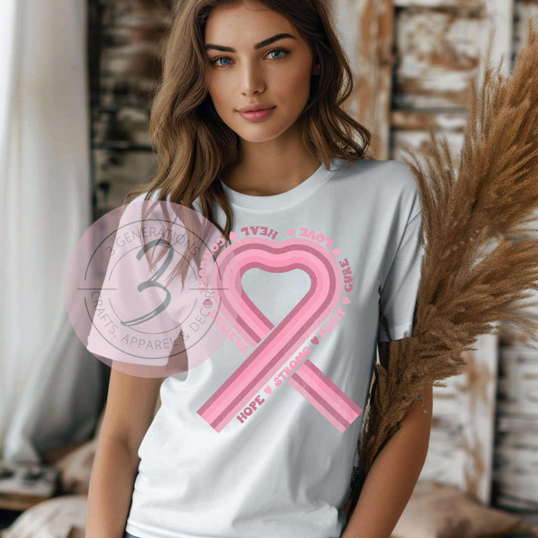Heart Ribbon Breast Cancer Awareness Graphic Tee