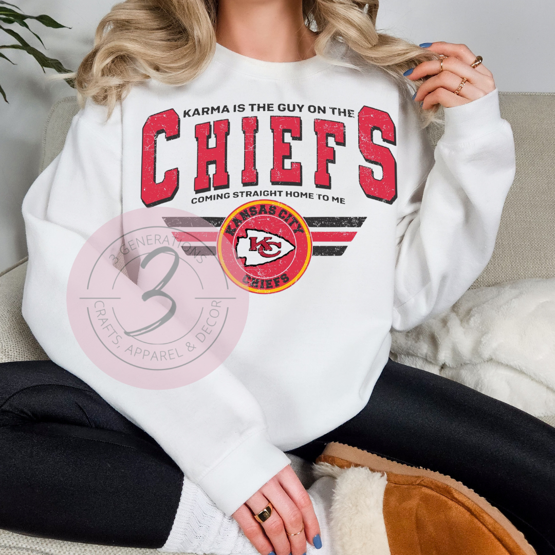 Karma is a guy on the Chiefs vintage Crew Neck Sweatshirt