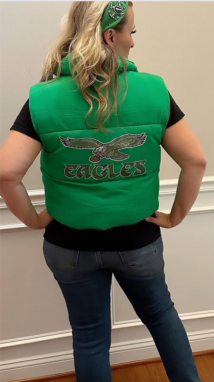 Kelly Green Bubble Vest with Vintage Eagles