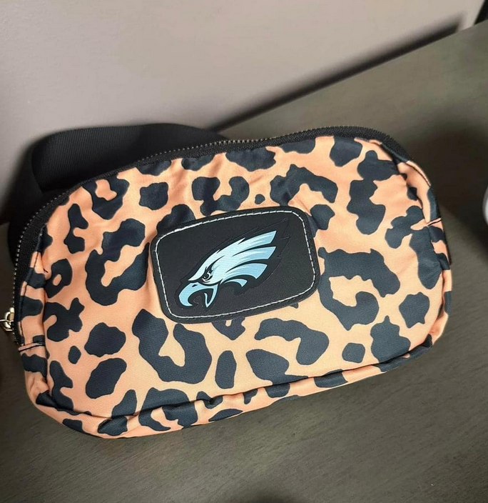 Leopard Belt Bag with Eagles Logo Leatherette Patch