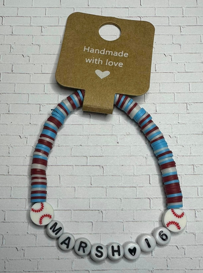 Marsh Powder Blue/Maroon Clay Bead Bracelet