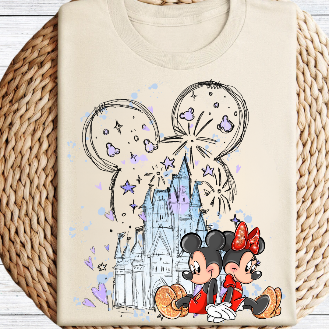 Mickey & Minnie Fireworks Castle Graphic Tee