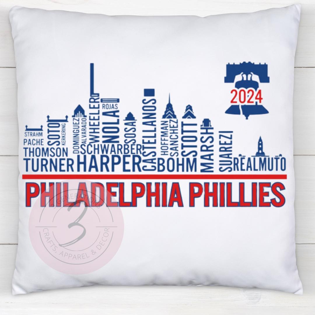 Philadelphia Skyline with Phillies 14 by 14 inch pillow